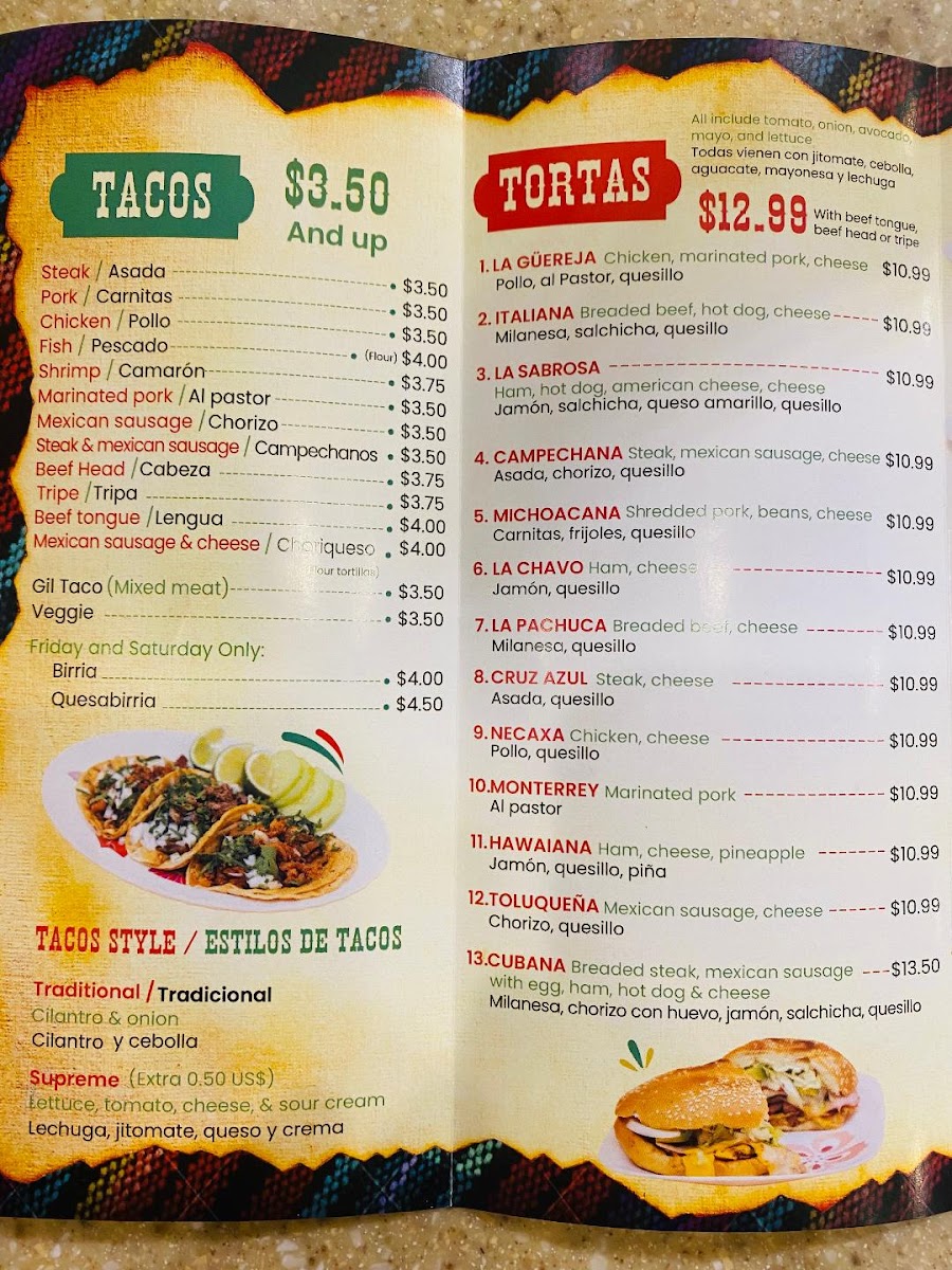 - Tacos: Dive into options like the flavorful Chorizo Taco and the hearty Birria Taco, each crafted to perfection at affordable prices.